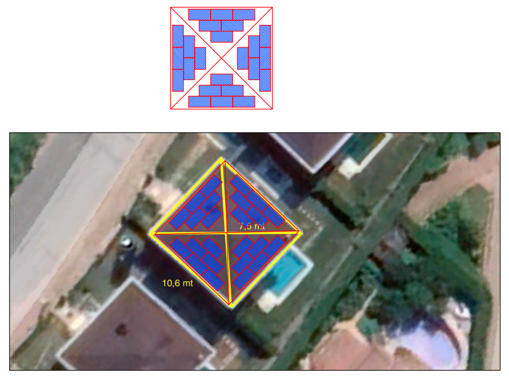 Seçtiğimiz PV ve mevcut çatı alanına göre 24 adet 550Wp gücünde fotovoltaik panel çatıya yerleştirildi. 24 x 550Wp = 13,2 kWp DC güç elde edildi.
